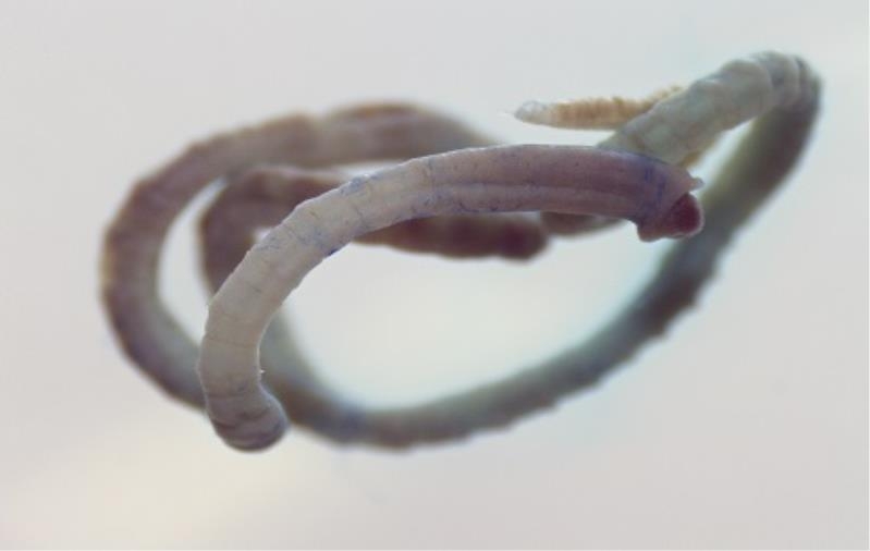 | ▲ 전북 고창 구시포에서 채집된 환형동물 (서울=연합뉴스) 해양수산부는 전북 고창 구시포에서 채집된 이 환형동물에 대해 지명을 담은 '구시포고리버들갯지렁이'와 첫 번째 가시마디에 배다리가 없는 특징을 반영한 '민다리고리버들갯지렁이'를 국문 이름 후보로 정했다고 6일 밝혔다. 국문 이름 선정 투표는 해수부와 국립해양생물자원관 홈페이지에서 18일까지 국민 누구나 참여할 수 있다. 2021.10.6.[해양수산부 제공. 재판매 및 DB금지]photo@yna.co.kr |