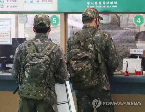 | ▲ Soldiers purchase tickets at a bus terminal in eastern Seoul, in the Oct. 3, 2021, in this file photo. (Yonhap) |