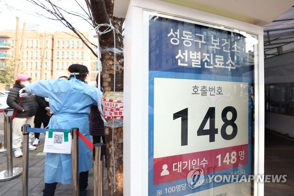 On Monday, the KDCA raised the country's risk level of the pandemic to the highest for the week ending Saturday amid the fast spread of the highly contagious omicron variant.