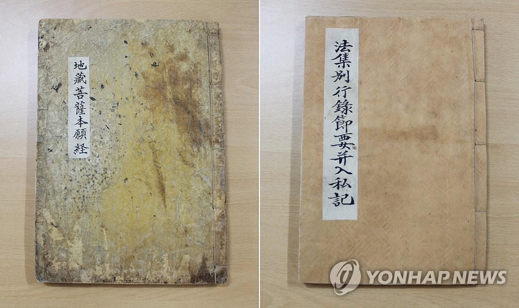 | ▲ 지장보살본원경과 법집별행록절요병입사기 (제주=연합뉴스) 제주도 세계유산본부는 희귀성과 학술 가치가 인정된 반야사 소장 전적류 '지장보살본원경'(왼쪽)과 '법집별행록절요병입사기'를 제주특별자치도 유형문화재로 지정 예고했다. 사진은 지정 예고된 유형문화재 모습. 2021.11.3 [제주도 제공, 재판매 및 DB 금지] bjc@yna.co.kr |