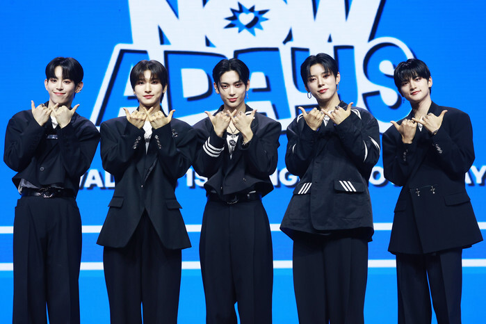 South Korean boy group Nowadays poses for a photo during a showcase for the group's first single album "Nowadays" in Seoul on April 2, 2024. (Yonhap)