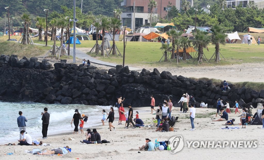 | ▲ '추캉스' 인파 몰린 제주 해변 (제주=연합뉴스) 2020년 추석 연휴인 10월 1일 오후 제주시 조천읍 함덕 해변을 찾은 관광객들이 '추캉스'를 즐기고 있다. [연합뉴스 자료사진] |