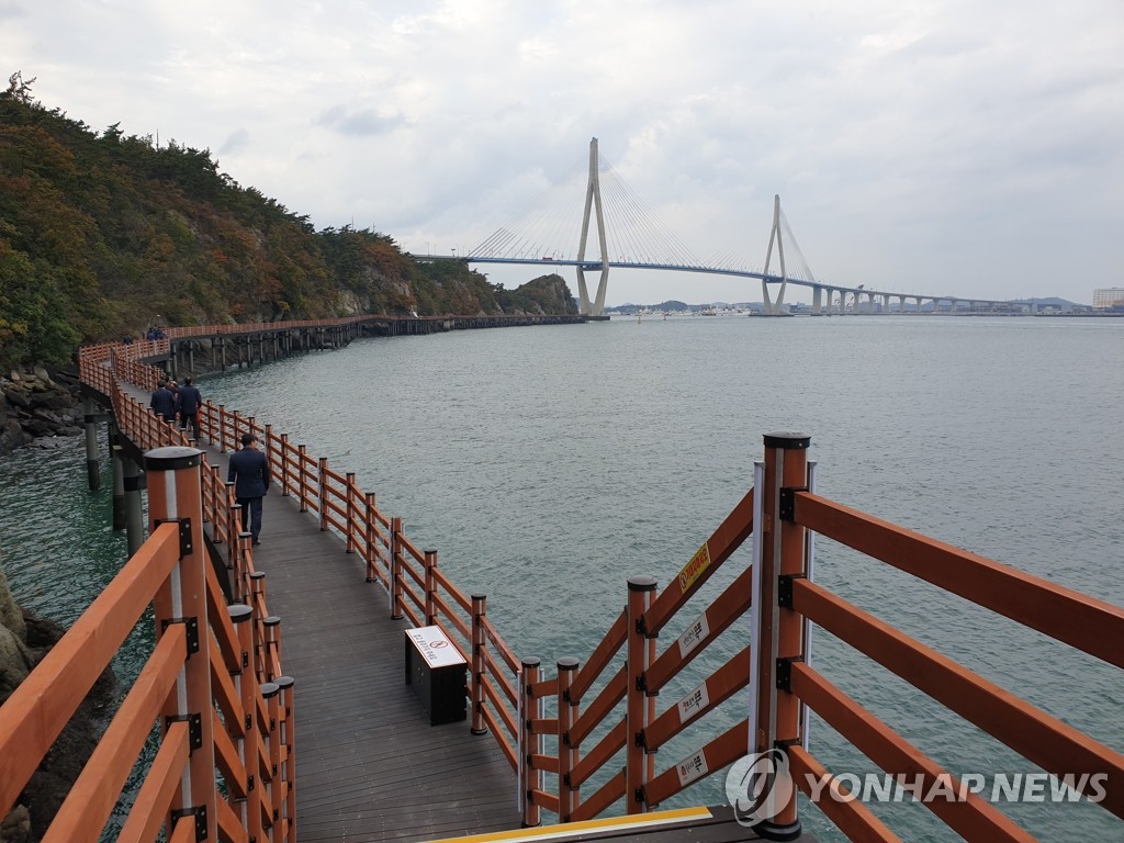 (목포=연합뉴스) 조근영 기자 =목포시가 고하도 해안에 설치한 해상 데크를 연장한다.