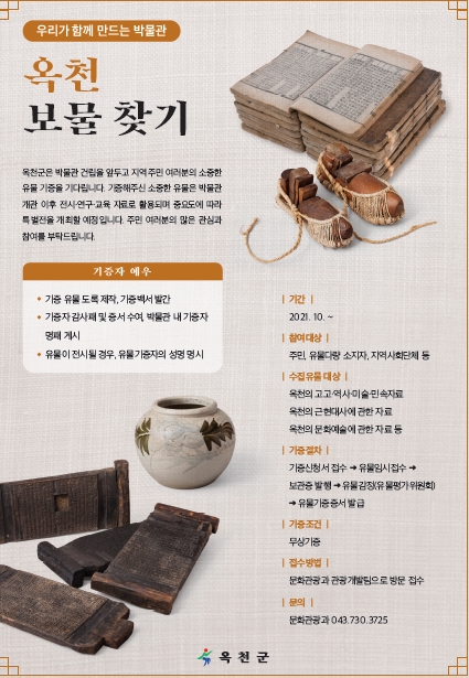 (옥천=연합뉴스) 심규석 기자 = 충북 옥천군이 군립 박물관 건립을 앞두고 유물 기증 캠페인을 한다.