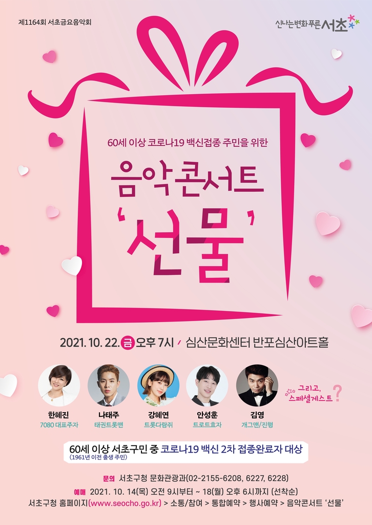 백신 맞고 트로트 스타 보고…서초구, 무료 콘서트 연다