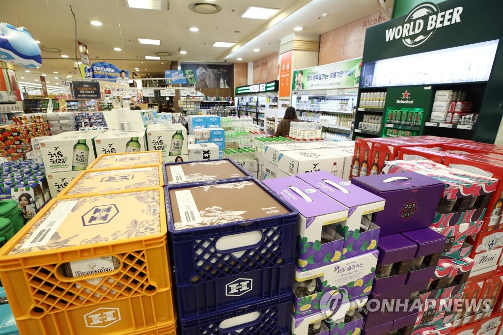 | ▲ 코로나19로 주점보단 '홈술' 신종 코로나바이러스 감염증(코로나19) 확산으로 외출과 모임이 줄어들면서 국내 맥주 시장에서 이른바 '홈술'로 대표되는 가정용 시장이 주점 등 유흥시장을 앞지른 것으로 나타났다. 11월 26일 주류업계에 따르면 오비맥주와 하이트진로가 각각 1, 2위를 차지한 국내 맥주 시장에서 올해 가정용 맥주 수요가 유흥시장용 수요를 앞질렀다. 사진은 이날 서울 시내 한 대형마트 주류 판매대. [연합뉴스 자료사진] |