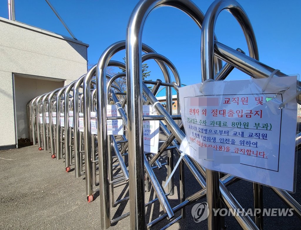 | ▲ This photo taken on March 22, 2021, shows a school with its entrance gate closed due to the coronavirus pandemic in Sokcho, Gangwon Province. (Yonhap) |