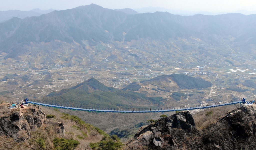 하동군은 성제봉 (1천115m) 신선대 일원에 길이 137m, 폭 1.6m의 구름다리가 내달 말 완공된다고 31일 밝혔다.