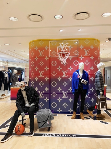 ▲ 갤러리아백화점은 오는 29일까지 서울 강남구 압구정동 명품관에 고가 브랜드 루이비통과 미국프로농구(NBA)의 협업 상품을 판매하는 팝업스토어를 연다고 20일 밝혔다. 팝업 스토어에서는 루이비통과 NBA의 대표 문양을 활용한 의상, 액세서리 등을 한정 수량으로 선보인다. (서울=연합뉴스)