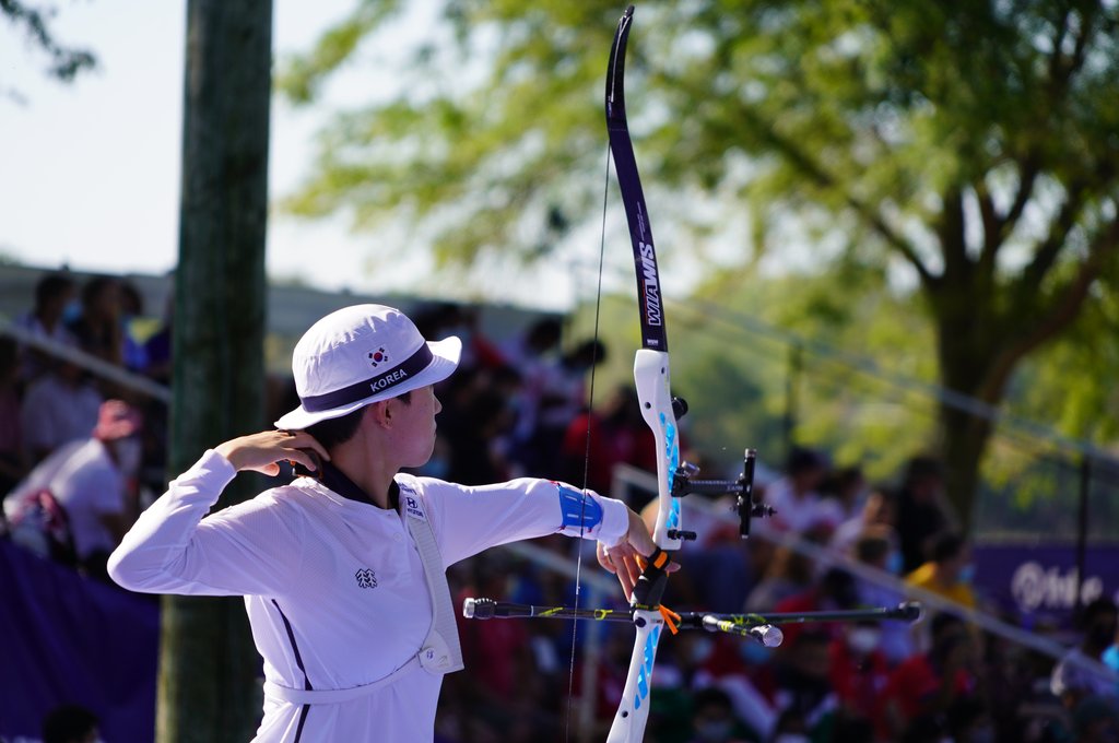 | ▲ 양궁 세계선수권 2관왕 안산 (서울=연합뉴스) 양궁 안산이 27일 미국 사우스다코타주 양크턴에서 끝난 2021 세계양궁선수권대회 혼성전과 여자 단체전에서 2관왕에 올랐다. 사진은 안산의 3~4위전 경기 모습. 2021.9.27 [대한양궁협회 제공. 재판매 및 DB 금지] photo@yna.co.kr |