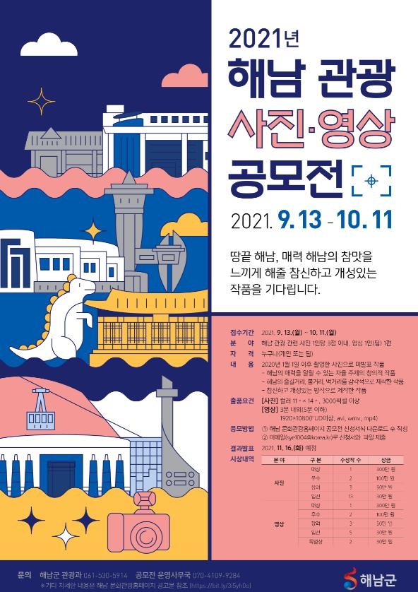 선정된 작품은 해남군 공식 유튜브‧SNS 등에 게시돼 해남 관광을 홍보할 예정이다.