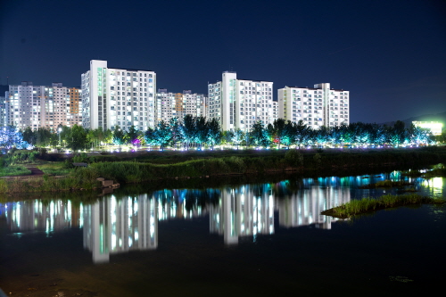충북 증평군 보강천의 야경이 밤마다 주민들의 무더위를 날리고 있다.