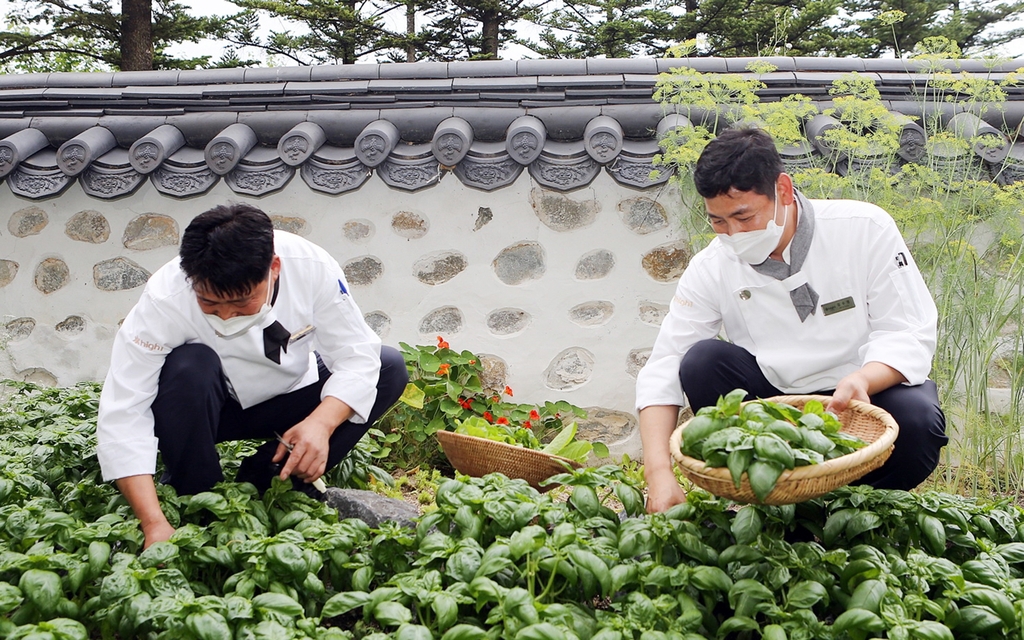음식 재료 채소 직접 재배하는 하이원리조트 요리사들