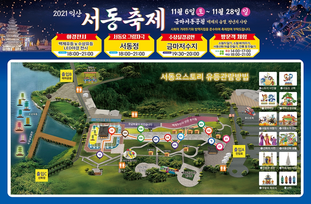 축제 기간 서동요 그림자극이 매일 저녁 6시부터 열리고 금마 주민의 한지 등(燈) 전시가 5∼8일 행사장을 수놓는다.