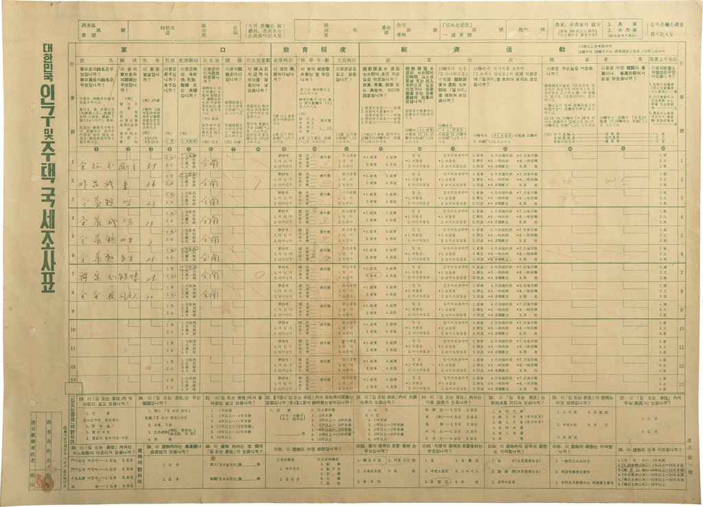| ▲ 대한민국 인구 및 주택 국세조사표 [대한민국역사박물관 제공=연합뉴스 자료사진. 재판매 및 DB 금지] |