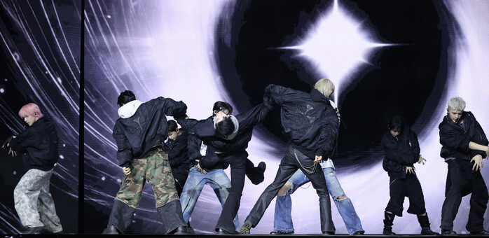 South Korean boy group &Team performs during a showcase for the group's debut mini album "Back to Life" in Seoul on Oct. 28, 2025. (Yonhap)
