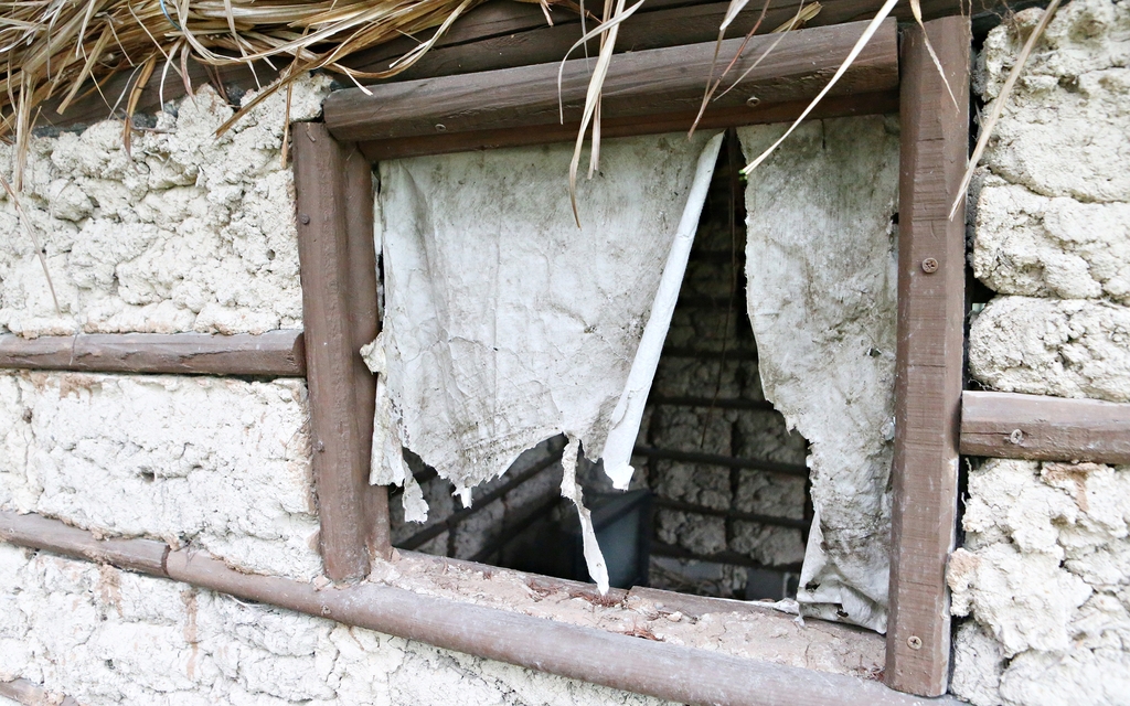 곳간 안에는 낡고 망가진 브라운관 텔레비전 한 대가 덩그러니 놓여 있었고, 방앗간 출입문은 파란 비닐로 막아 놓았다.