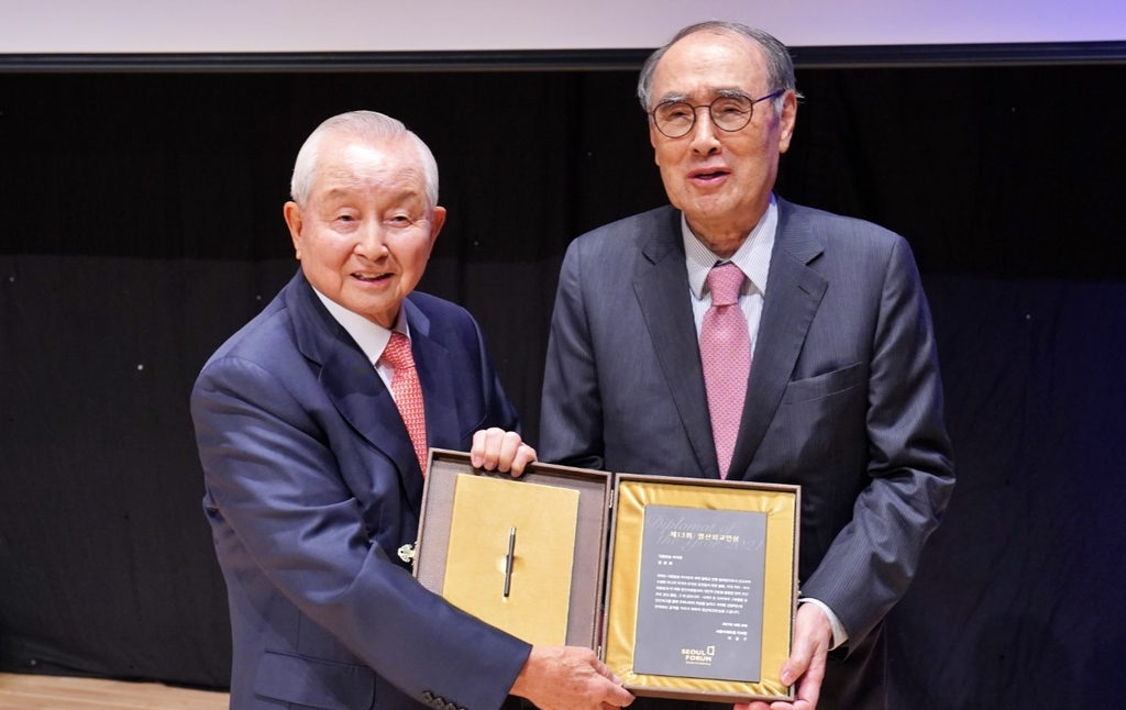 ▲ 극동방송은 29일 이사장 김장환 목사가 민간 외교와 한미동맹 발전에 헌신한 공로를 인정받아 서울국제포럼(이사장 이홍구)이 주는 '2021 제13회 영산외교인상'을 받았다고 30일 밝혔다. 김 이사장은 상금 1천만 원 전액을 미국 워싱턴 DC 내 한국전 참전용사 기념공원에 들어서는 '추모의 벽' 건립을 위해 기부했다. (서울=연합뉴스)
