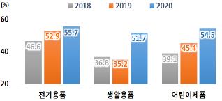 리콜 제품의 회수율은 54.3%로 집계됐다. 지난해 45.5%보다 8.8%포인트 증가했다. 품목별로는 어린이 제품이 54.5%, 생활용품이 51.7%, 전기용품이 55.7%의 회수율을 보였다.