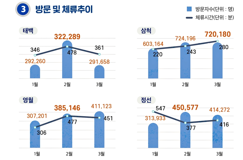 | ▲ 2021년 1분기 방문 및 체류 추이 [강원연구원 탄광지역발전지원센터 제공.재판매 및 DB 금지] |