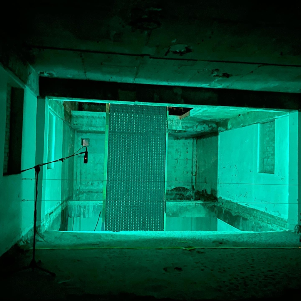 폐건축물처럼 보이는 이색적인 전시 공간에 스피커 1천886개를 활용해 7m 높이의 거대한 직사각형 형태의 스피커를 설치했다. 스피커는 마치 거대한 장작이 타는 듯한 소리를 낸다.