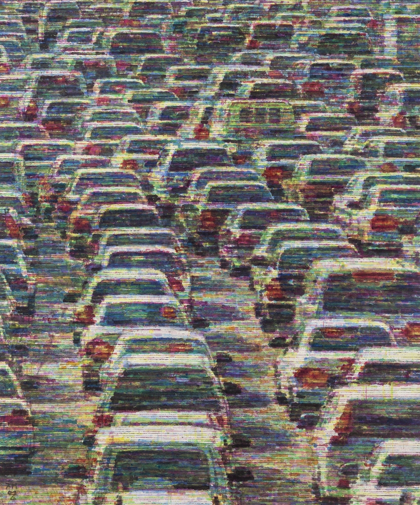 작가는 한지 화면 전체에 짧은 가로선을 촘촘하게 쌓는 방식으로 작품을 완성해나간다. 작가 특유의 가로선은 TV 같은 전자기기 화면의 주사선 같은 효과를 낸다. 지붕 위에 안테나를 설치하던 시절 TV처럼 선명하지 않은 화면이 특별한 잔상을 남긴다. 11월 28일까지.