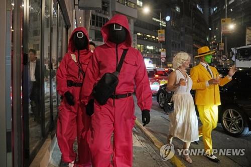 [월드&포토] 홍콩의 핼러윈 파티 점령한 '오징어게임'