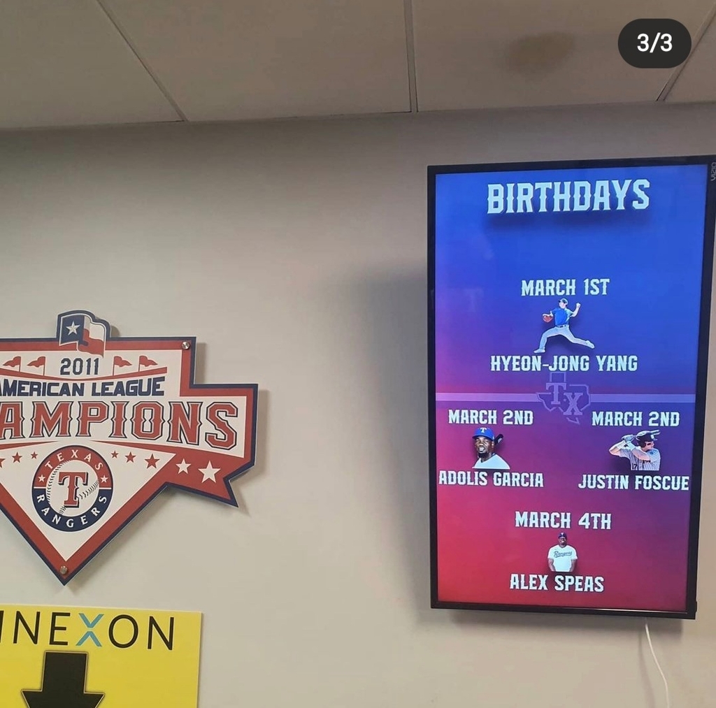 텍사스 구단이 설치한 디지털 '생일 게시판' 맨 위에는 양현종의 생일 '3월 1일'이 표시돼 있다.