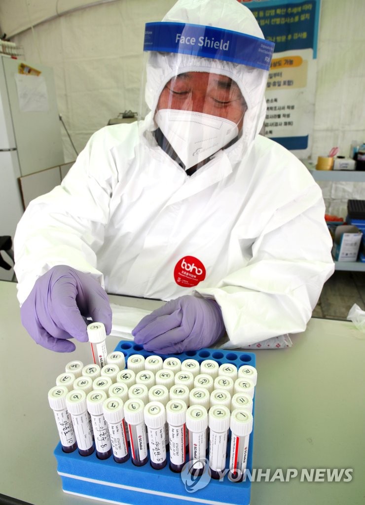 | ▲ A medical official organizes samples collected from COVID-19 tests at a makeshift clinic in Gwangju, 330 kilometers south of Seoul, on April 6, 2021. (Yonhap) |