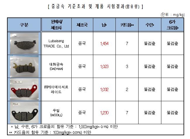 | ▲ 납이 검출된 오토바이용 브레이크 마찰재 [한국소비자원 홈페이지 캡처. 재판매 및 DB 금지 |