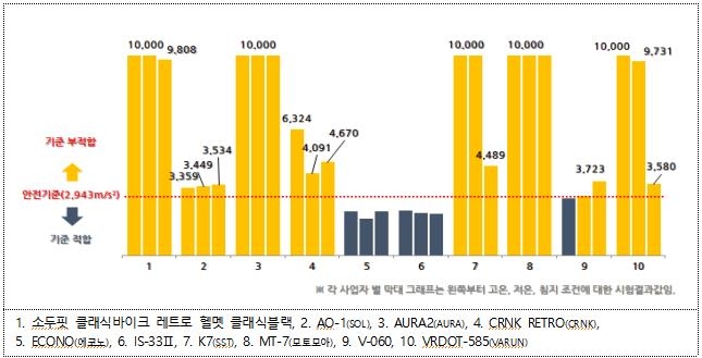 | ▲ 오토바이 헬멧 충격 흡수성 조사 결과 [한국소비자원 제공. 재판매 및 DB 금지] |