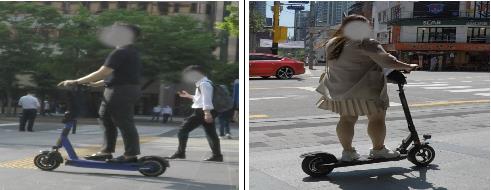 횡단보도를 이용한 37명 중 관련 규정에 따라 전동킥보드에서 하차 후 보행으로 통과한 사례는 5.4%에 불과했다. 2명 이상이 동시 탑승하거나 운전 중 휴대전화를 사용하는 경우도 있었다.