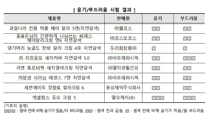 | ▲ 윤기/부드러움 시험 결과 [한국소비자원 제공, 재판매 및 DB 금지] |