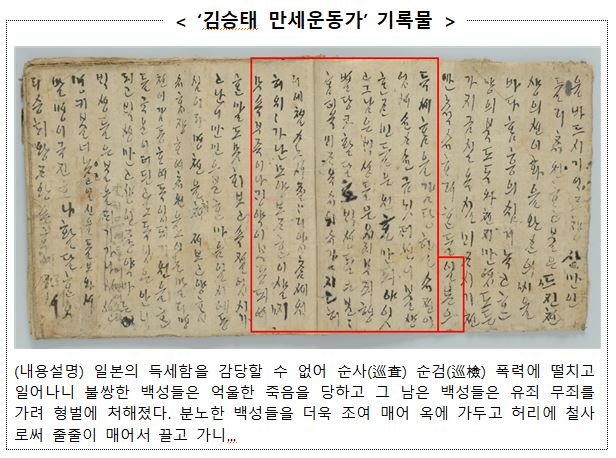 | ▲ 국가기록원이 올해 3·1절 102주년을 맞아 복원한 김해시의 독립운동 기록 '김승태 만세운동가'. [국가기록원 제공. 재판매 및 DB 금지] |