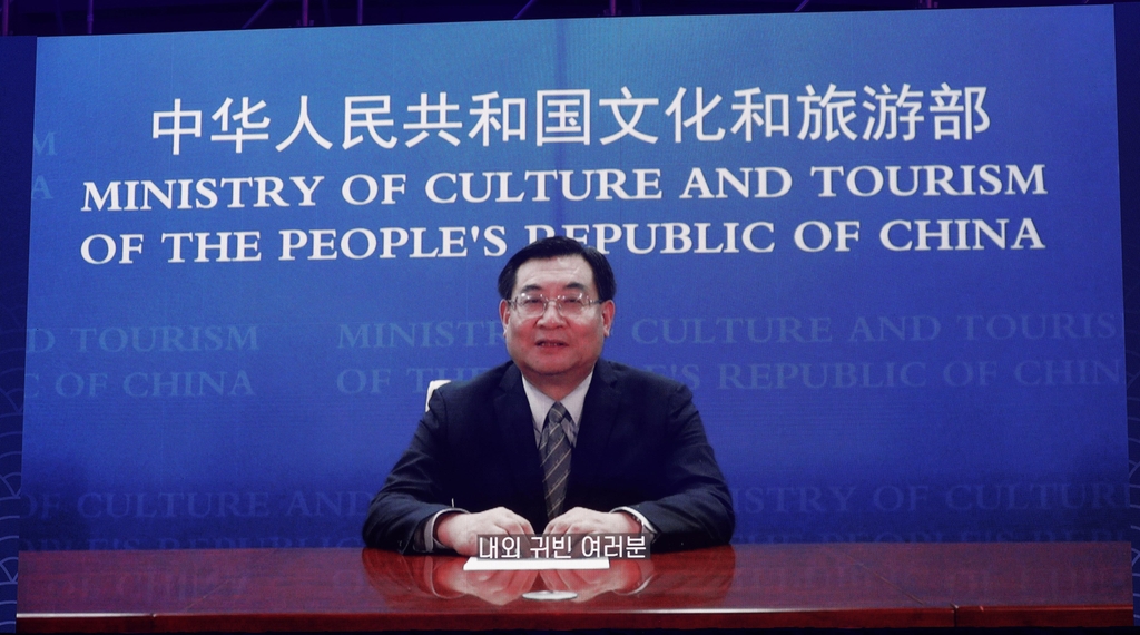 | ▲ 한중 문화교류의 해 개막식 (서울=연합뉴스) 후허핑 중국 문화관광부장이 '2021-2022 한중 문화교류의 해' 개막식에서 축사를 하고 있다. 2021.9.15 [문체부 제공. 재판매 및 DB 금지] |