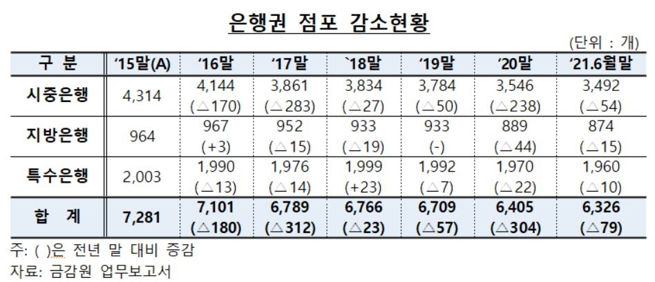 | ▲ 은행권 점포 감소현황 [금감원 제공] |