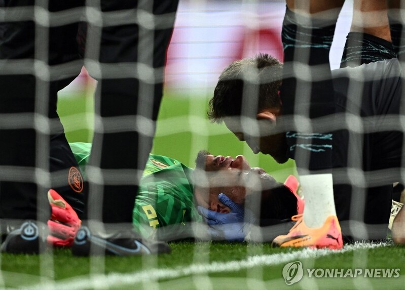 ▲ 쓰러진 주전 골키퍼 에데르송 [로이터=연합뉴스] |