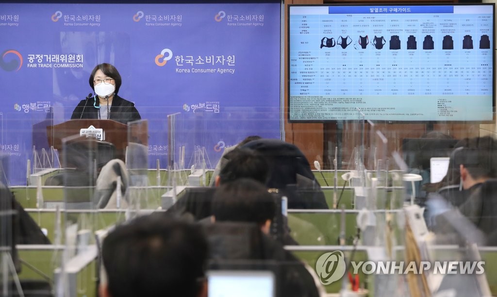 | ▲ 발열 조끼 '일부 제품은 표면온도가 의류 안전 기준 초과' (세종=연합뉴스) 김주형 기자 = 한은주 한국소비자원 섬유고분자팀장이 18일 오전 세종시 정부세종청사에서 보조 배터리로 열을 발생시키는 '발열 조끼' 10개 제품을 대상으로 보온성, 안전성, 사용성 등 시험·평가 결과를 브리핑하고 있다. kjhpress@yna.co.kr |