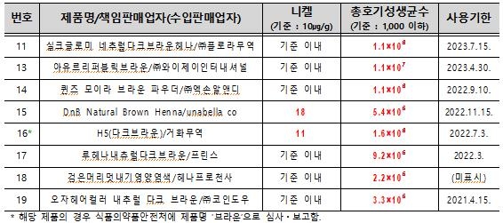 헤나 염모제 8개 제품, 세균 기준치 초과…최대 1만1천배