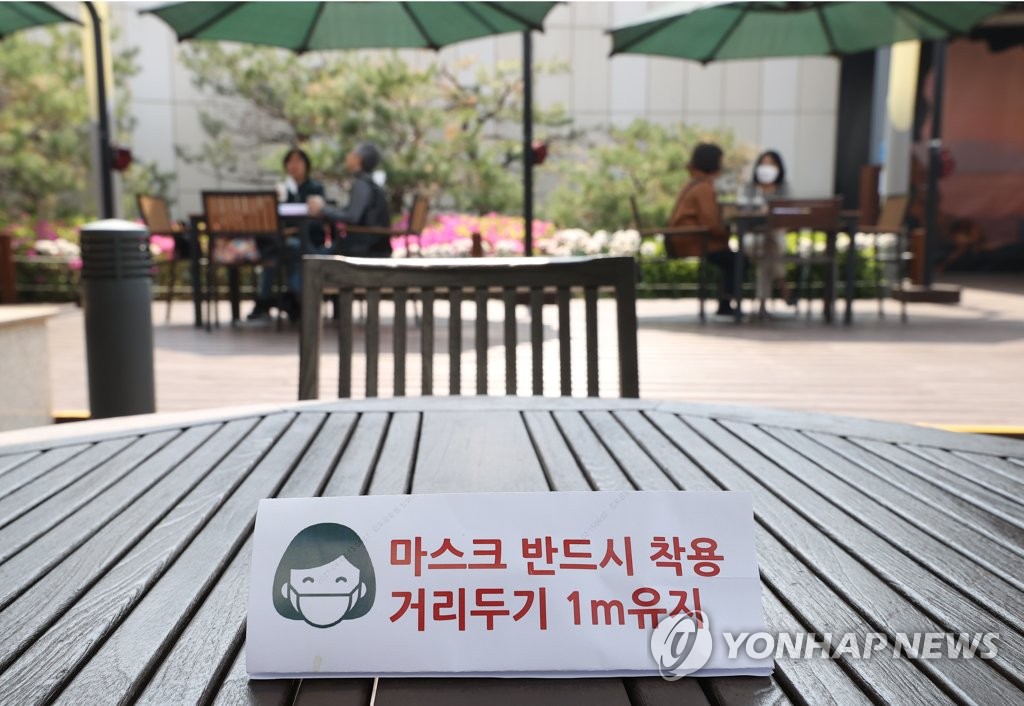 | ▲ 실내 마스크 착용 의무화 D-1 (서울=연합뉴스) 김도훈 기자 = 마스크 착용 의무화 조치를 하루 앞둔 11일 오전 서울 시내의 한 백화점의 커피숍에 마스크 착용 안내문이 세워져 있다.
