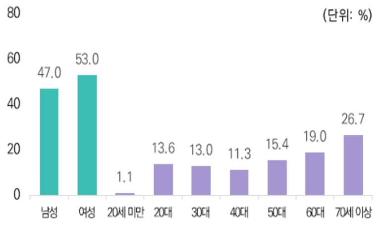 성별로는 여성(53.0%)이 남성(47.0%)보다 많았다.