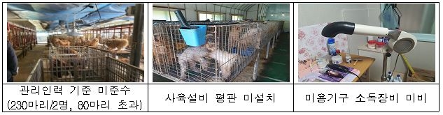 | ▲ 반려동물 업체 법규 위반 사례 [농식품부 제공] |