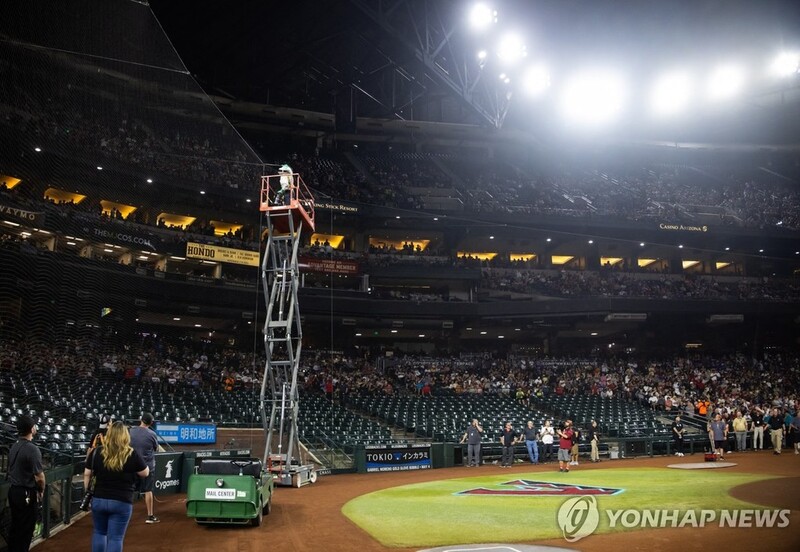 1일(한국시간) 미국 애리조나주 피닉스의 체이스 필드에서 열린 로스앤젤레스 다저스와 애리조나 다이아몬드백스의 경기는 예정보다 1시간 55분이나 지연된 현지시간 오후 8시 35분에 시작됐다.