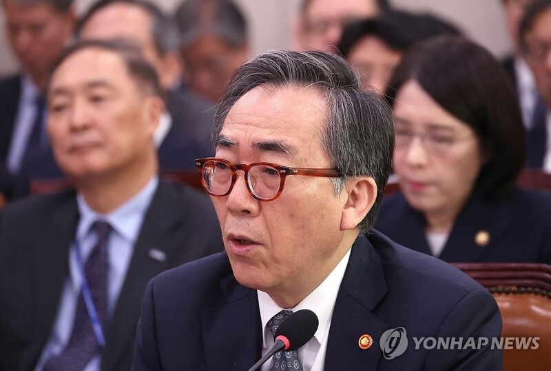 | ▲ Foreign Minister Cho Tae-yul speaks during a parliamentary audit at the National Assembly in Seoul on Oct. 24, 2024. (Yonhap) |