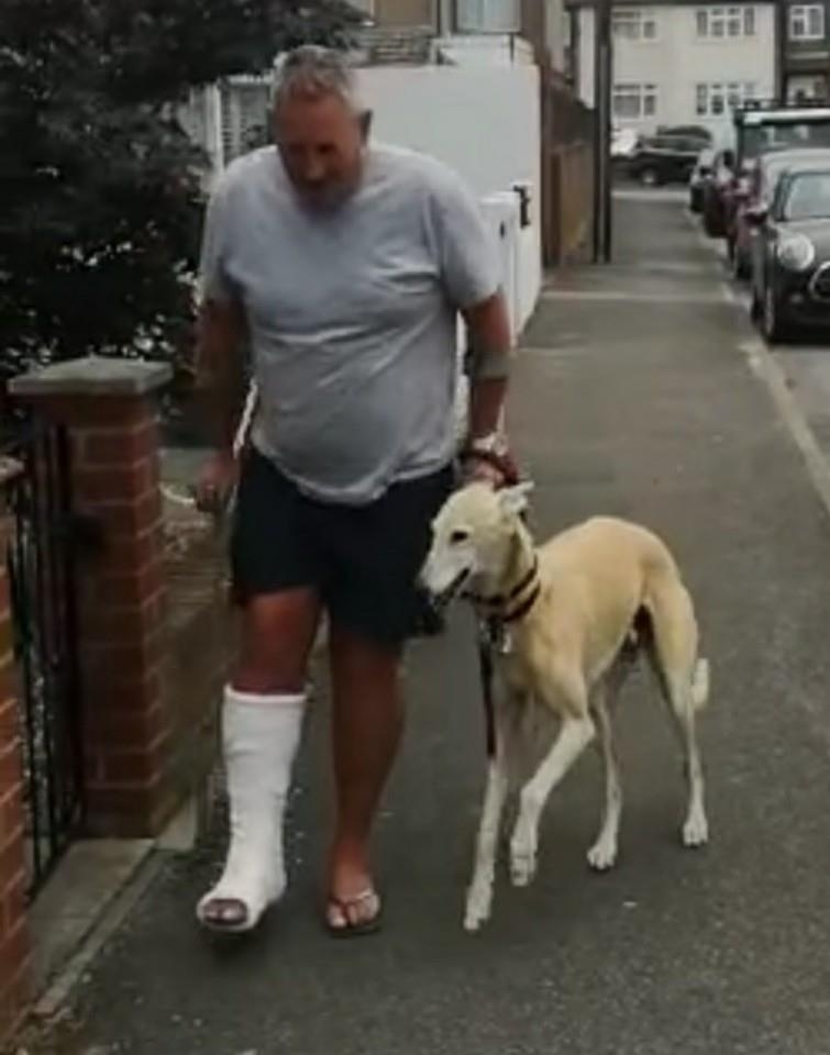 18일(현지시간) 일간 데일리메일 등에 따르면 런던에 사는 러셀 존스는 최근 페이스북에 자신의 반려견 '빌'과 함께 다리를 절며 거리를 걷는 모습의 동영상을 공유했다.