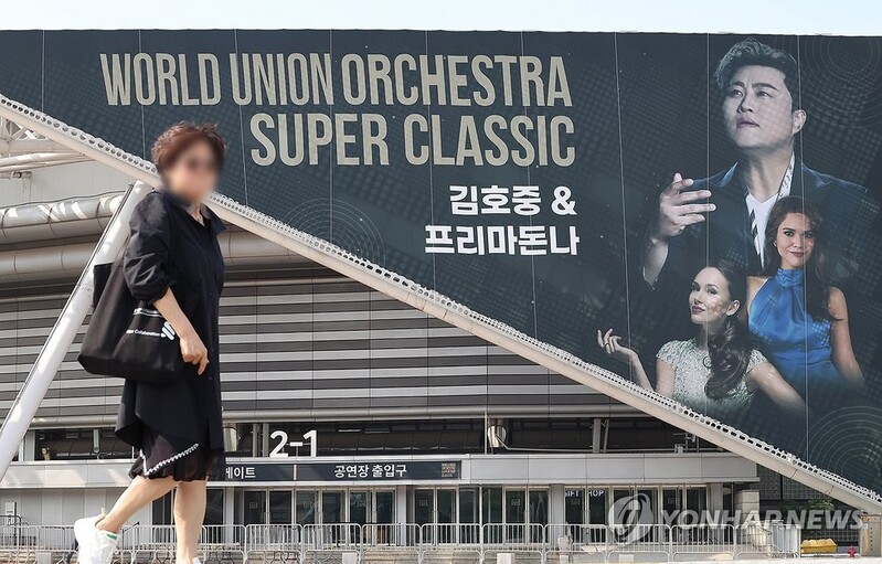 ▲ This image shows a banner promoting popera star Kim Ho-joong's concert at Olympic Park in Seoul on May 22, 2024. (Yonhap) |
