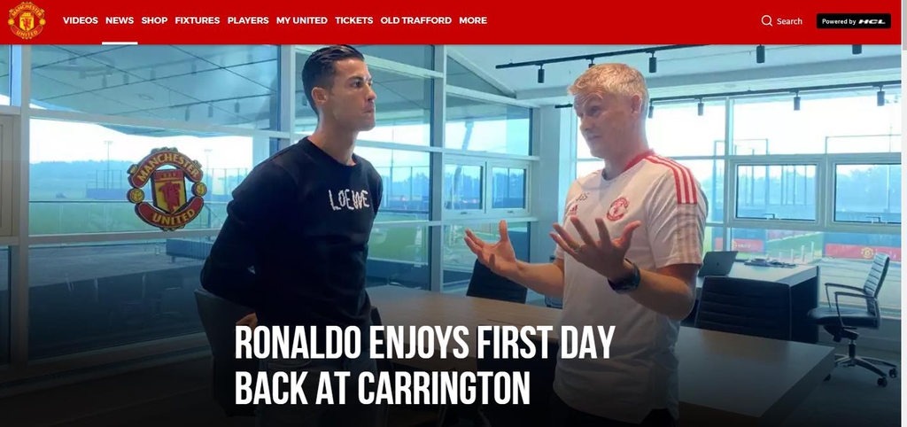 맨유는 8일(한국시간) 홈페이지를 통해 "호날두가 새로운 팀 동료와 함께 훈련했다. 캐링턴(맨유 훈련장)에서 복귀 첫날을 즐겼다"라며 호날두의 복귀 첫 훈련 소식을 전했다.