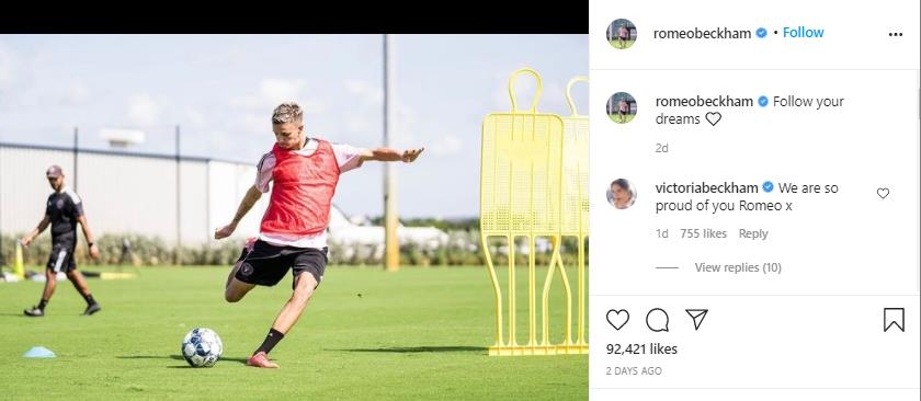 로미오의 인스타그램에 어머니 빅토리아도 댓글을 통해 '우리는 너가 자랑스럽다'라고 응원했다.