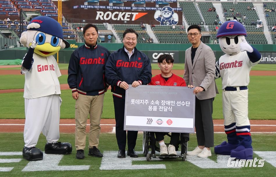 이를 위해 지난달 19일 롯데자이언츠와 KT위즈 경기가 열린 부산 사직야구장에서 롯데지주 장애인 선수단을 위한 용품 전달식을 진행하기도 했다.