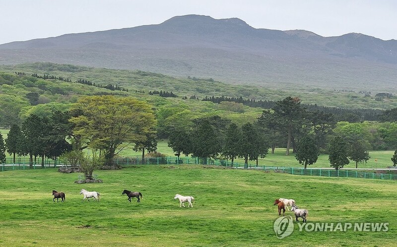 ▲ 봄이 반가운 제주마 (제주=연합뉴스) 제주도 축산진흥원은 지난 4월 17일 제주시 용강동 제주마방목지에서 천연기념물 제347호 제주마 36마리를 올해 처음으로 방목했다. 방목된 제주마들이 이날 오전 드넓은 초지를 즐기고 있다. 2024.4.17 [연합뉴스 자료사진] |